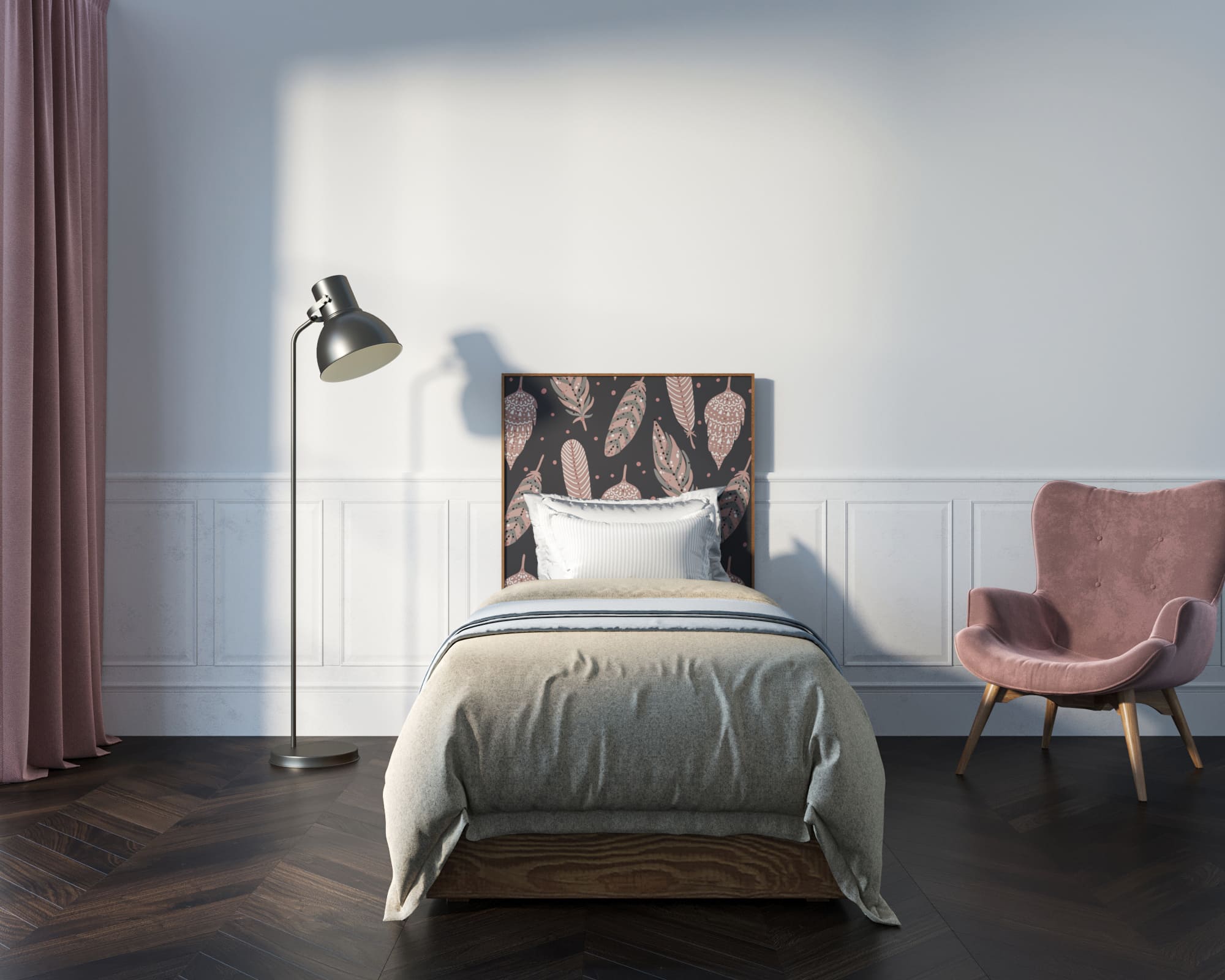 Опора приходится на корпус кровати. Принт наносится принтером специальными УФ - чернилами.