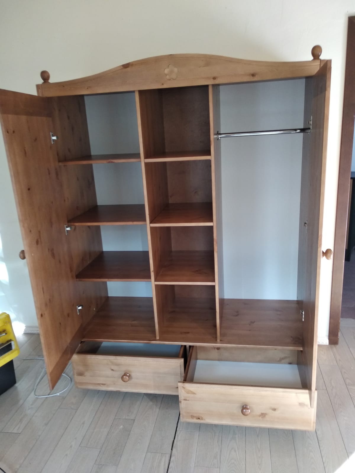 Шкаф 3 створчатый белый. Ручка по умолчанию - крупная деревянная кнопка в цвет корпуса.