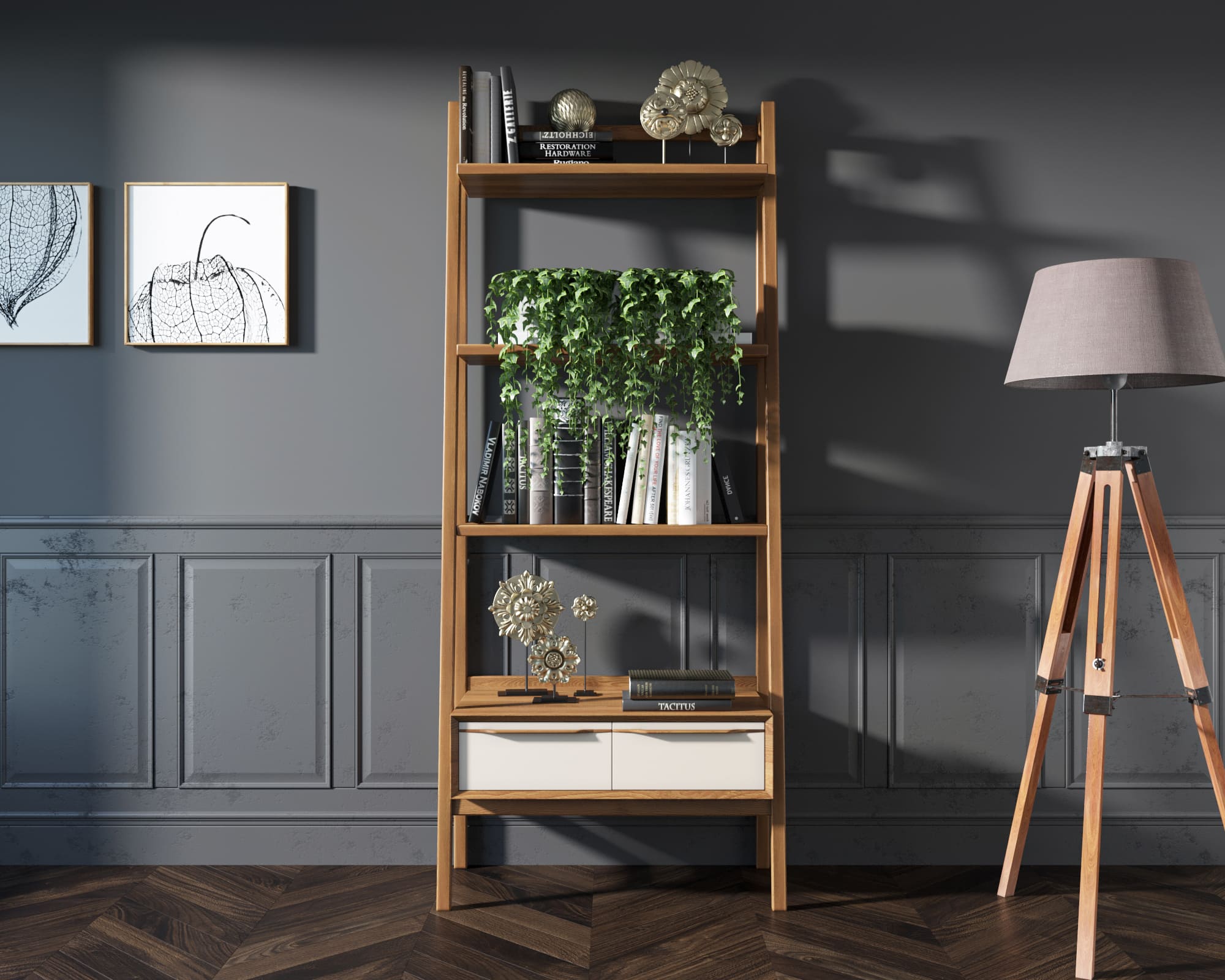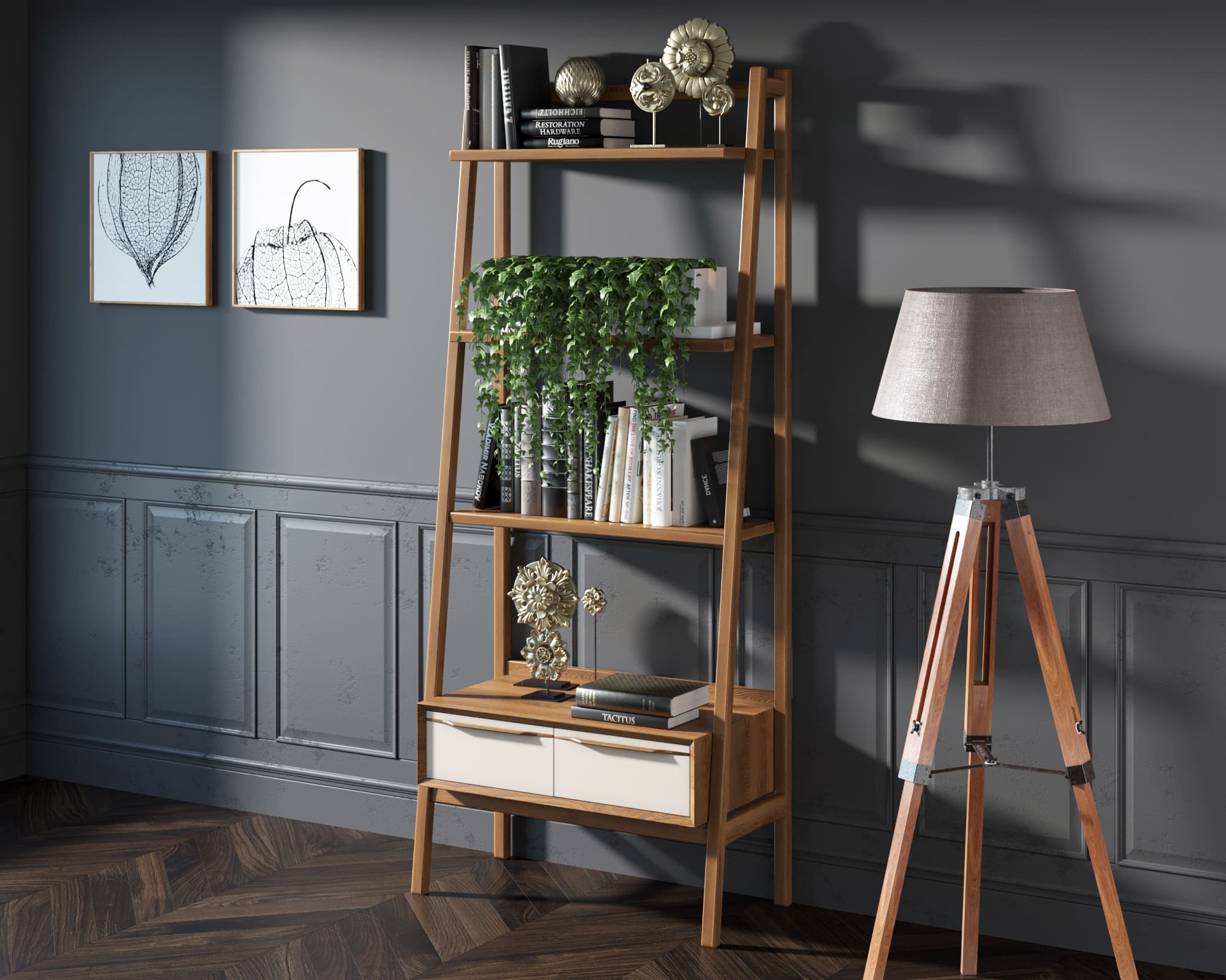 Стеллаж "Bruni" изготавливается вручную из шпона ясеня.