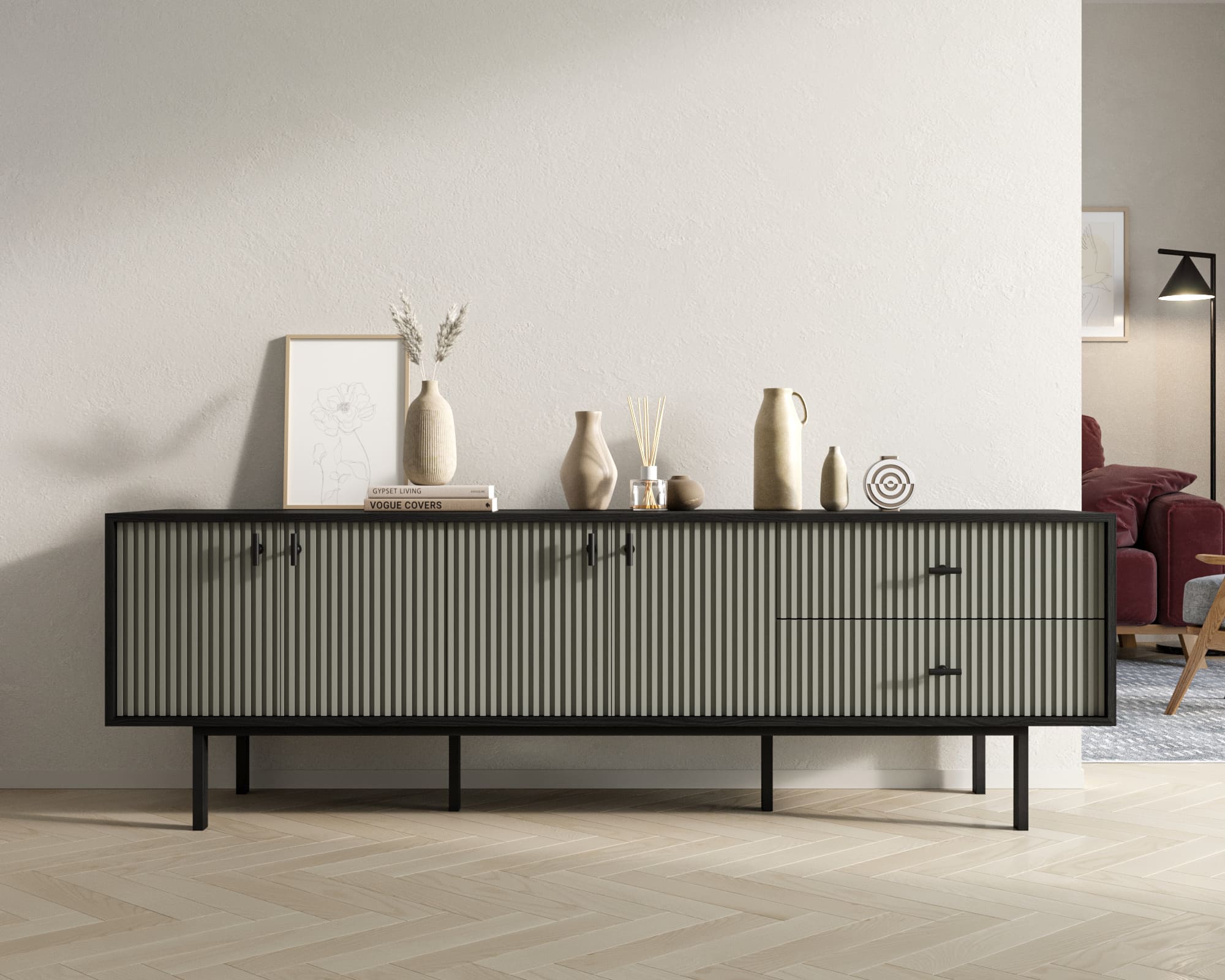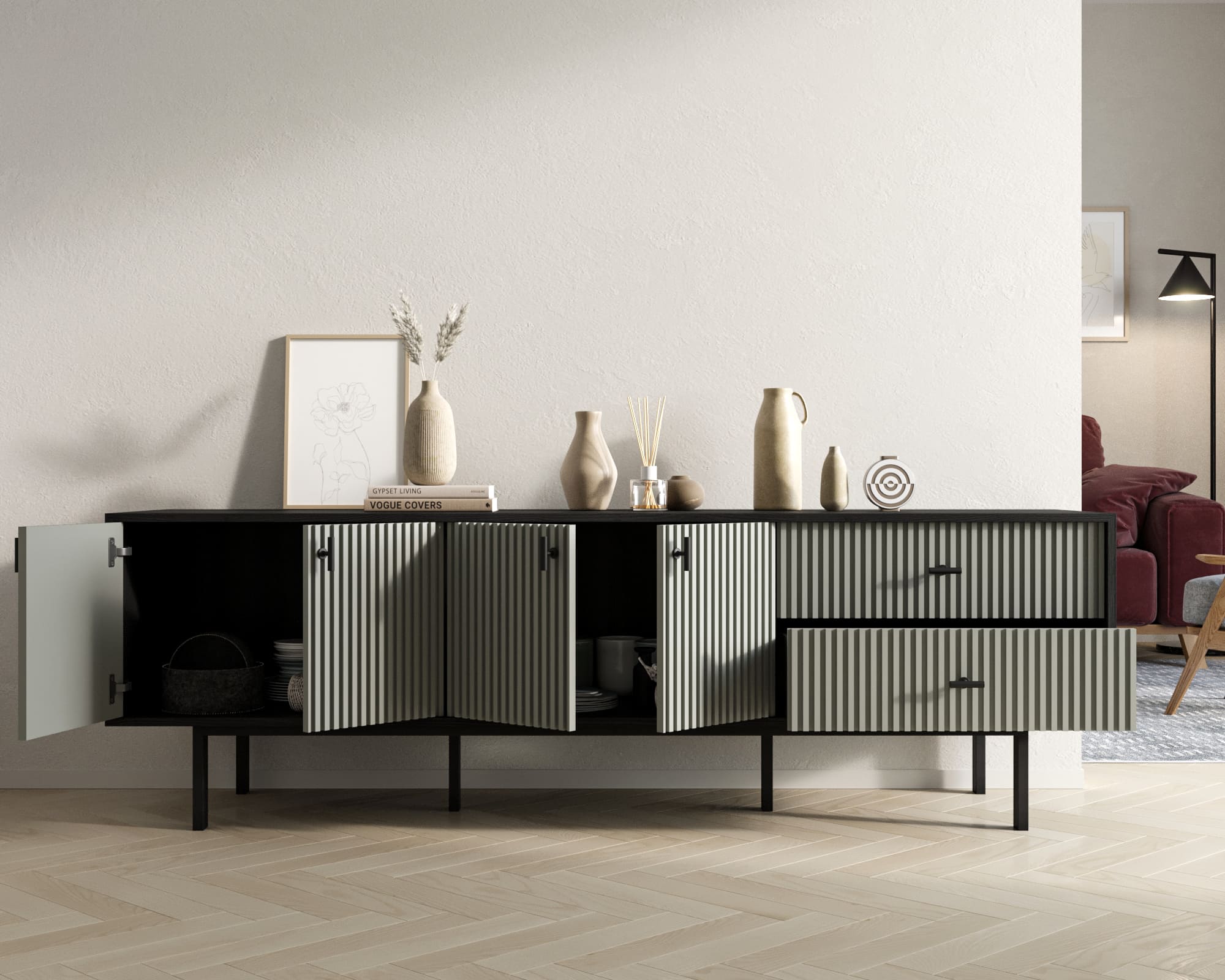 Мы предлагаем различные варианты исполнения: с фасадами или с фасадами и ящиками. Петли с доводчиком обеспечивают плавное закрывание дверей, а шариковые направляющие без доводчика позволяют легко выдвигать ящики. Комод поставляется в сборе, что упрощает его установку.