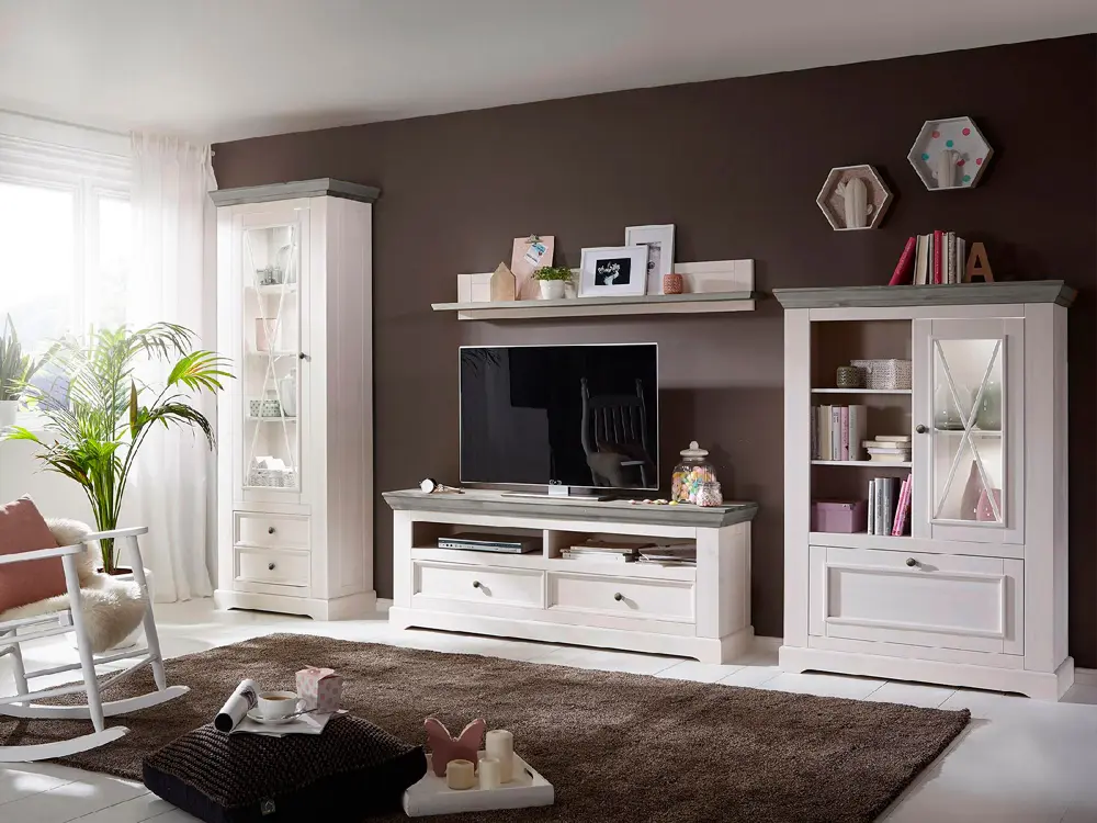 Габариты комода позволяют поставить его как в гостиную, так и на кухню. Комод Форест имеет две двери, в правой части комода дверка со стеклом за ней одна полка. В левой части комода – ниша с двумя открытыми полками. Внизу откидывающаяся дверка с большим пространством за ней. В комоде можно хранить вещи, за дверкой со стеклом прекрасно будут смотреться книги или красивая посуда. Что положить и поставить в комод зависит только от Вашей фантазии.