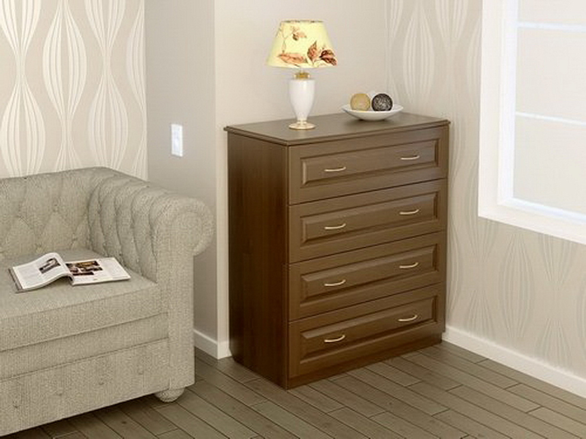 Функциональный комод с четырьмя ящиками подойдет для хранения вещей и постельного белья, а также для документов.