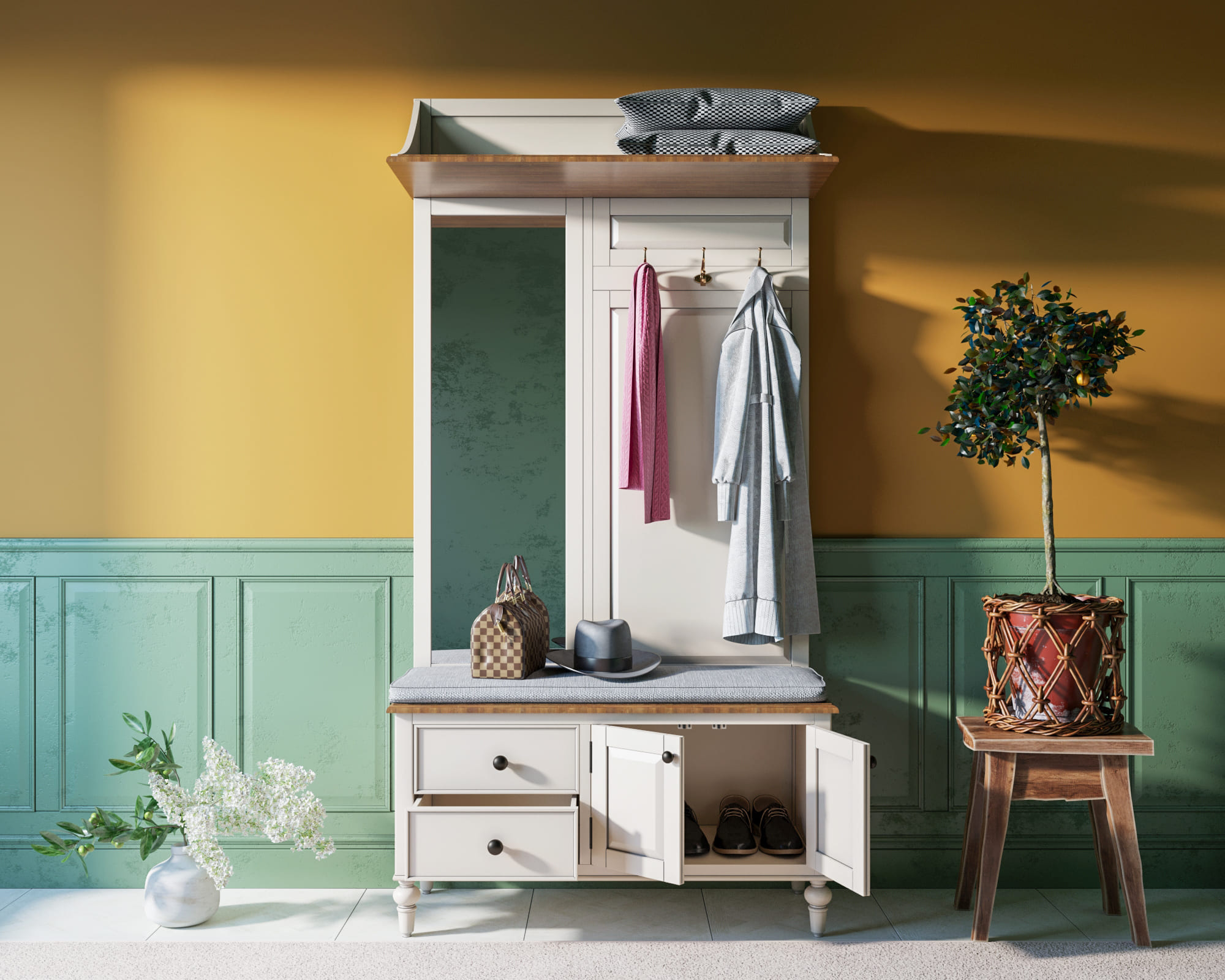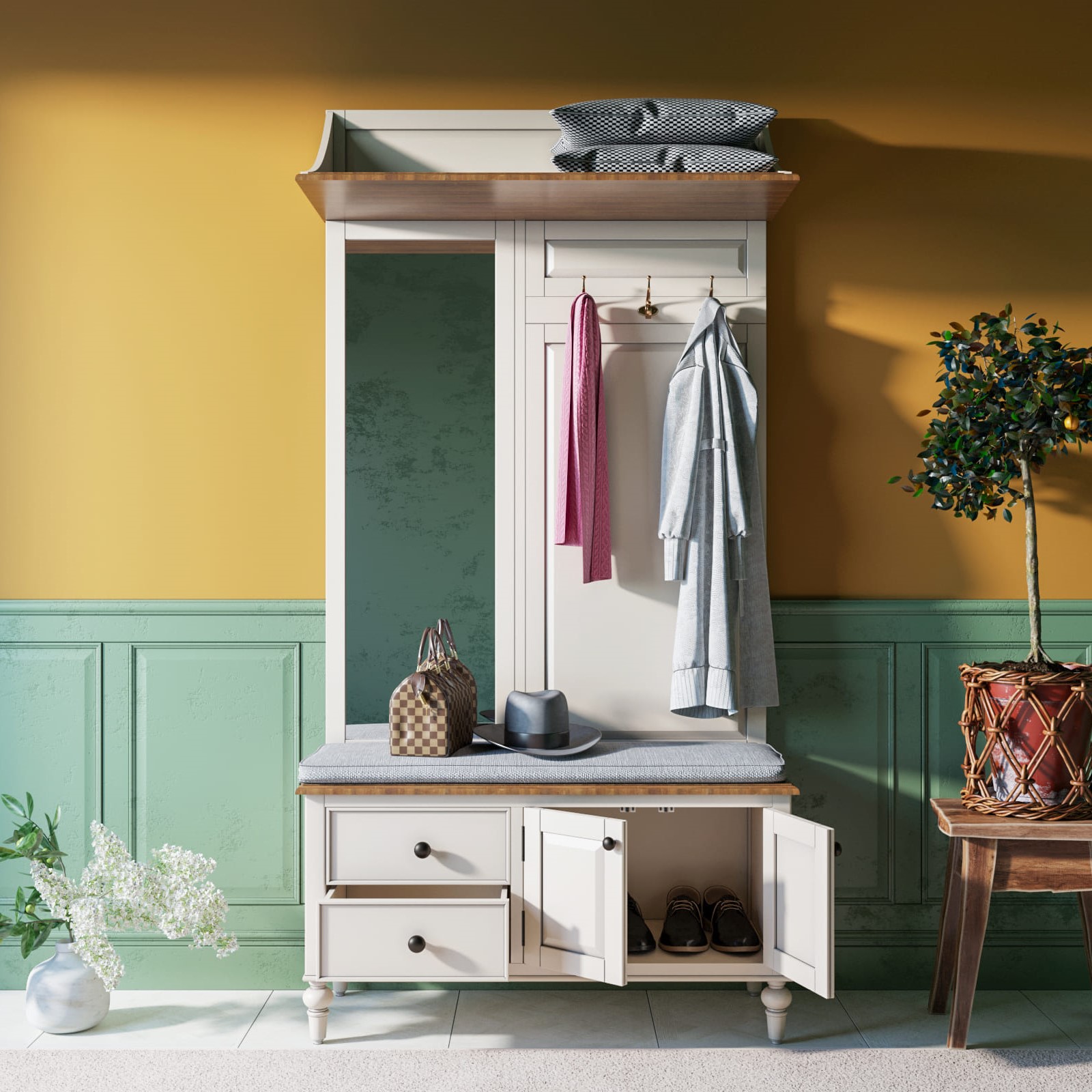 Белая прихожая с 2 ящиками "Odri" с полкой в стиле прованс
