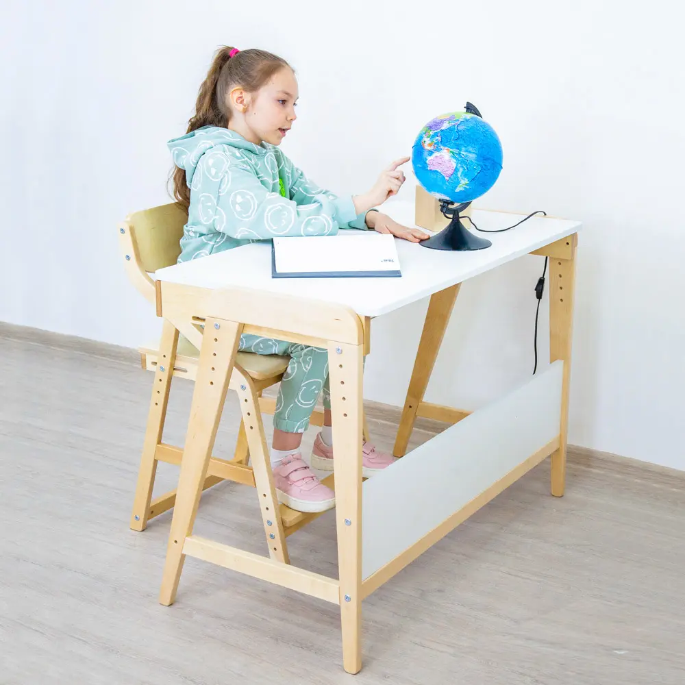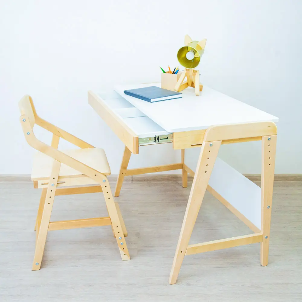 Наш растущий стол изготовлен из массива берёзы, что делает его прочным и долговечным. Он подходит для детей от 2 лет и старше, а также для взрослых. Благодаря регулируемой высоте столешницы, стол будет расти вместе с ребёнком, обеспечивая ему правильную осанку и комфортное рабочее пространство.