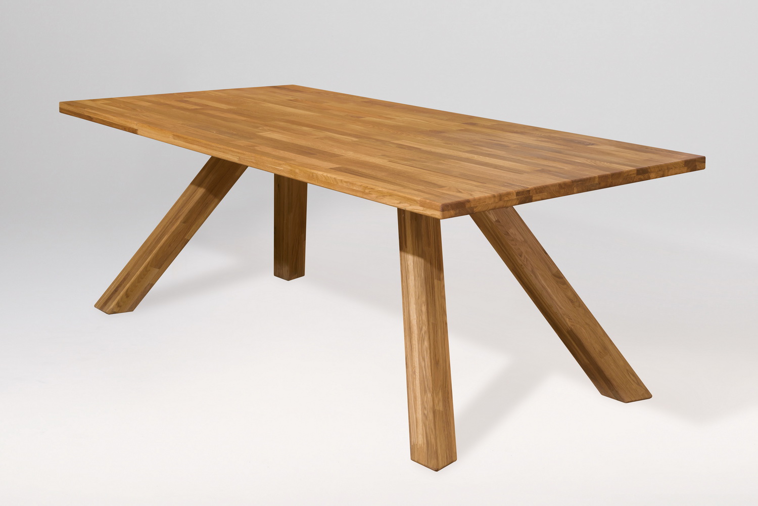 Обеденный стол «Декстер 3» изготавливается из долговечного природного материала – массива дуба. Стол отличается простым и стильным дизайном, а, главное, вместительностью – за ним может разместиться до 10 человек. Еще одно преимущество – устойчивые наклонные ножки.