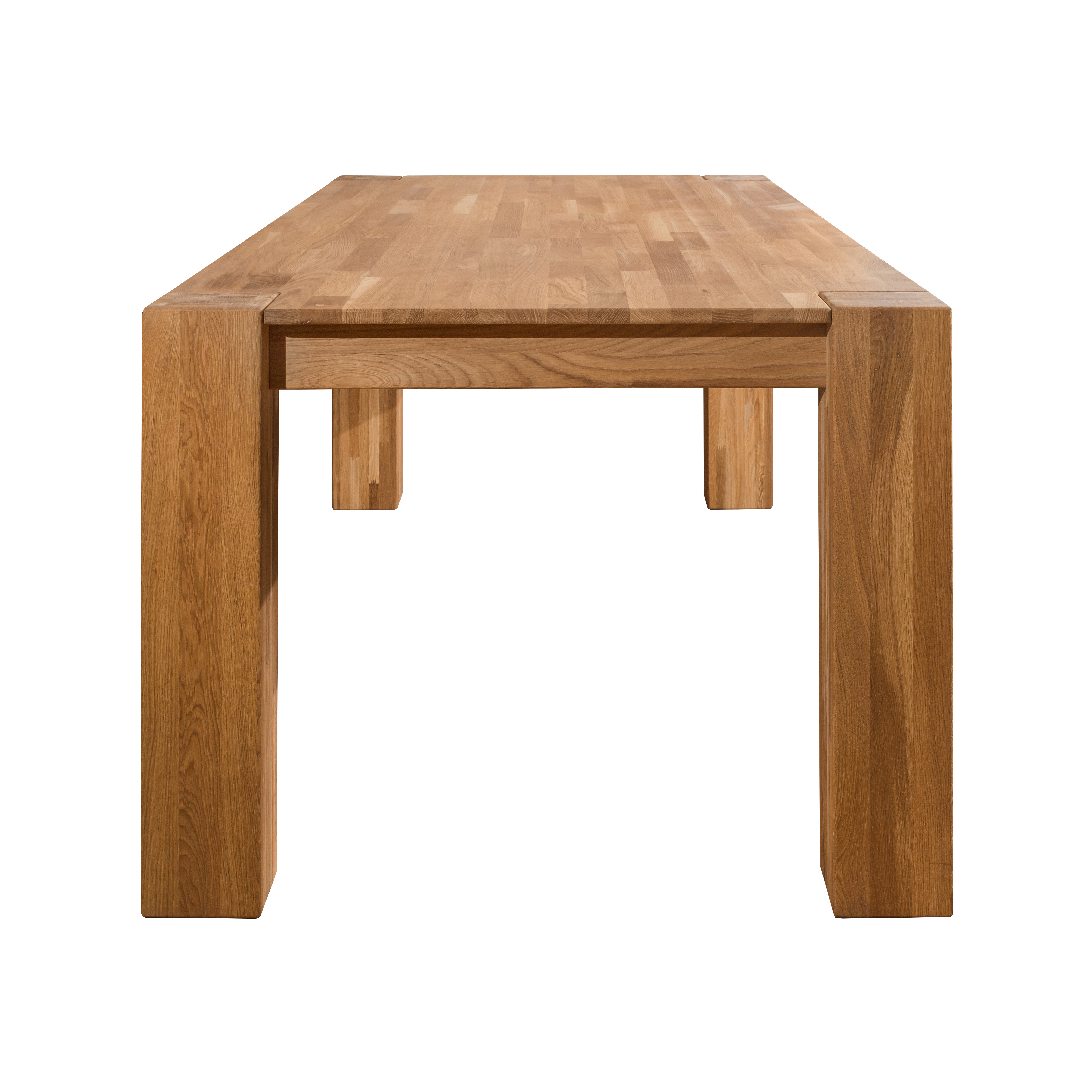 Стол изготовлен из натурального и долговечного материала – массива дуба, при этом сохраняется природная древесная текстура. Доступно шесть вариантов отделки: бейц-масло, дуб отбеленный, дуб паркетный, дуб венге, тёмная вишня и итальянский орех. Вы можете выбрать тот вариант, который лучше всего подойдёт к вашему интерьеру. Столик имеет устойчивые массивные ножки 150х150 мм.
