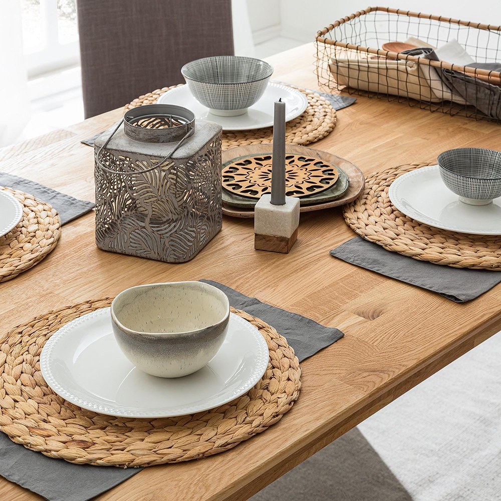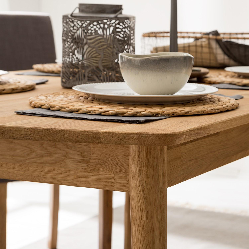 Обеденный стол «Сканди 1» в скандинавском стиле изготавливается из долговечного природного материала – массива дуба. Стол нераздвижной, отличается простым и стильным дизайном с высокими ножками, а, главное, вместительностью – за ним могут свободно разместиться до 6 человек.