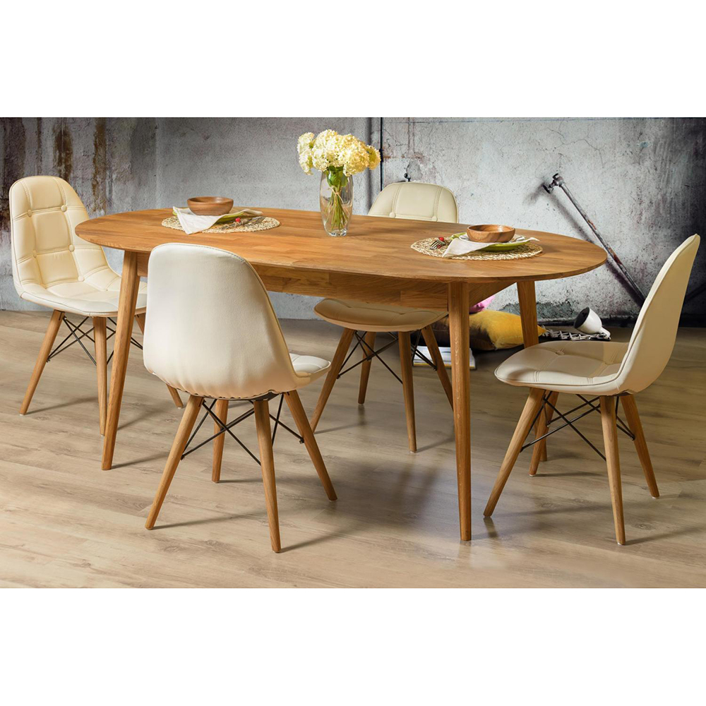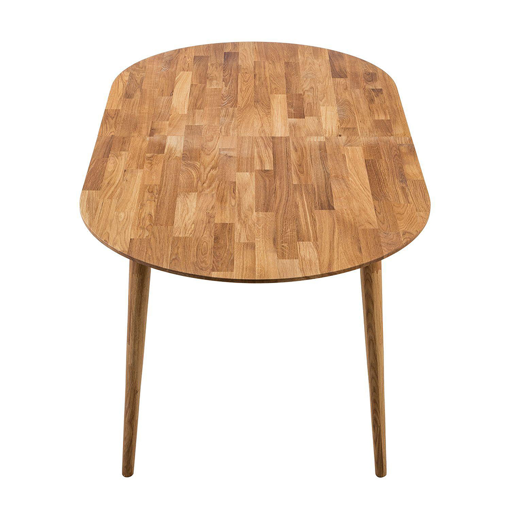 Обеденный стол «Сканди 2» в скандинавском стиле изготавливается из долговечного природного материала – массива дуба. Стол нераздвижной, отличается простым и стильным дизайном с высокими ножками и скругленными углами, а, главное, вместительностью – за ним могут свободно разместиться до 6 человек.
