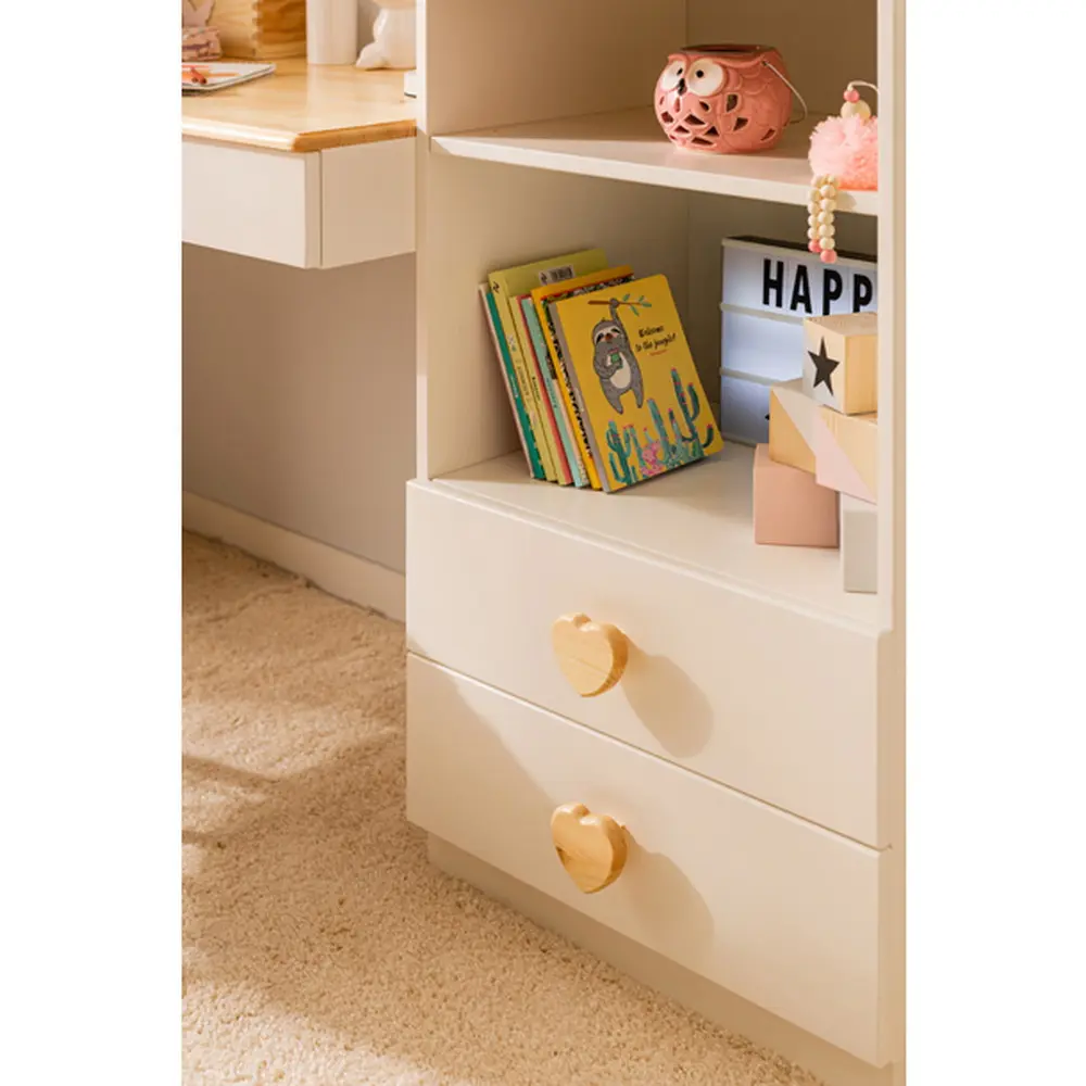 Материал — сосна, задняя стенка, дно ящиков — ДВП белого цвета. Фурнитура без доводчиков. Ручки по выбору — деревянные кнопки (по умолчанию, на фото), кружки, квадраты, сердечки, запилы.