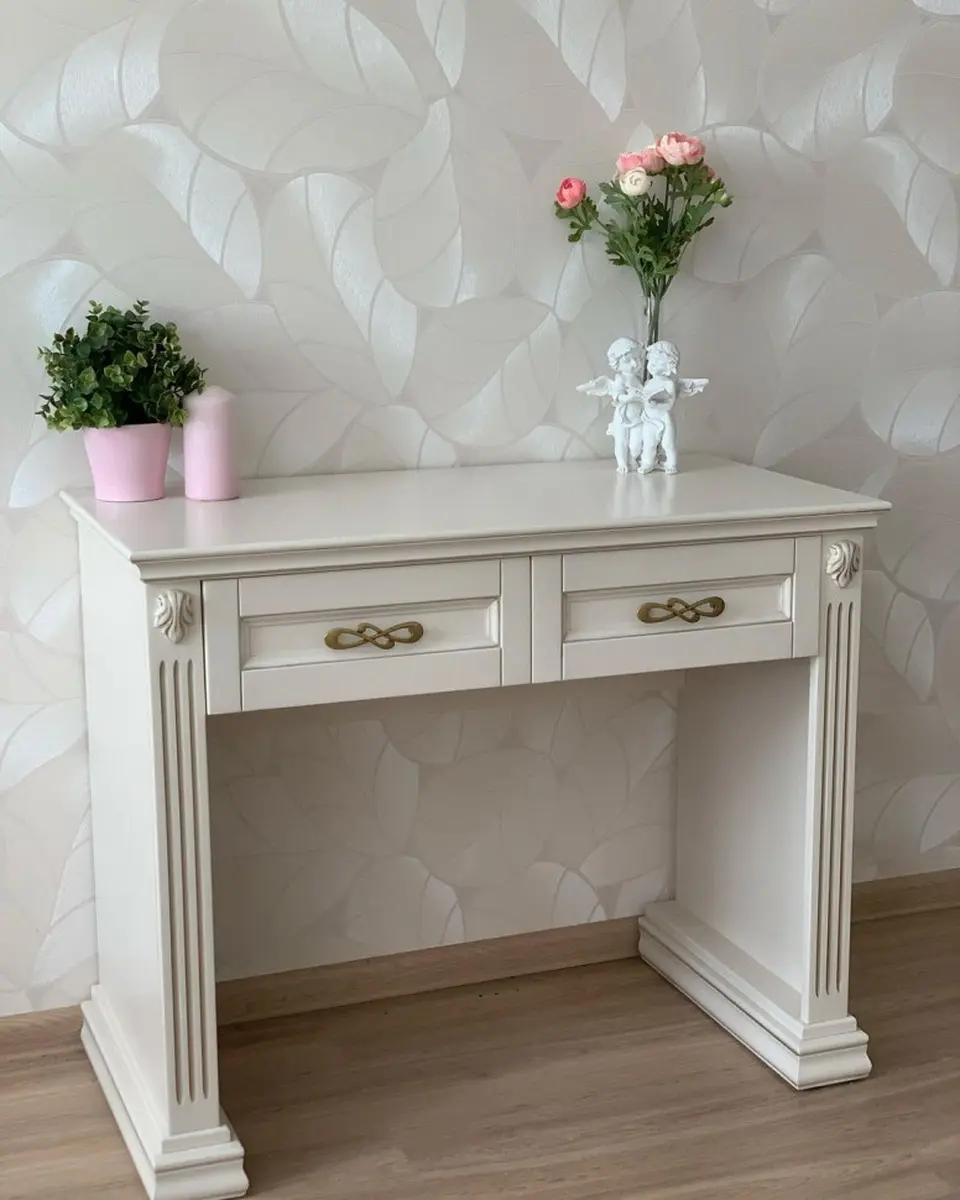 Этот туалетный столик, благодаря своим размерам и внешним данным выполнит функцию и рабочего стола и консоли.
