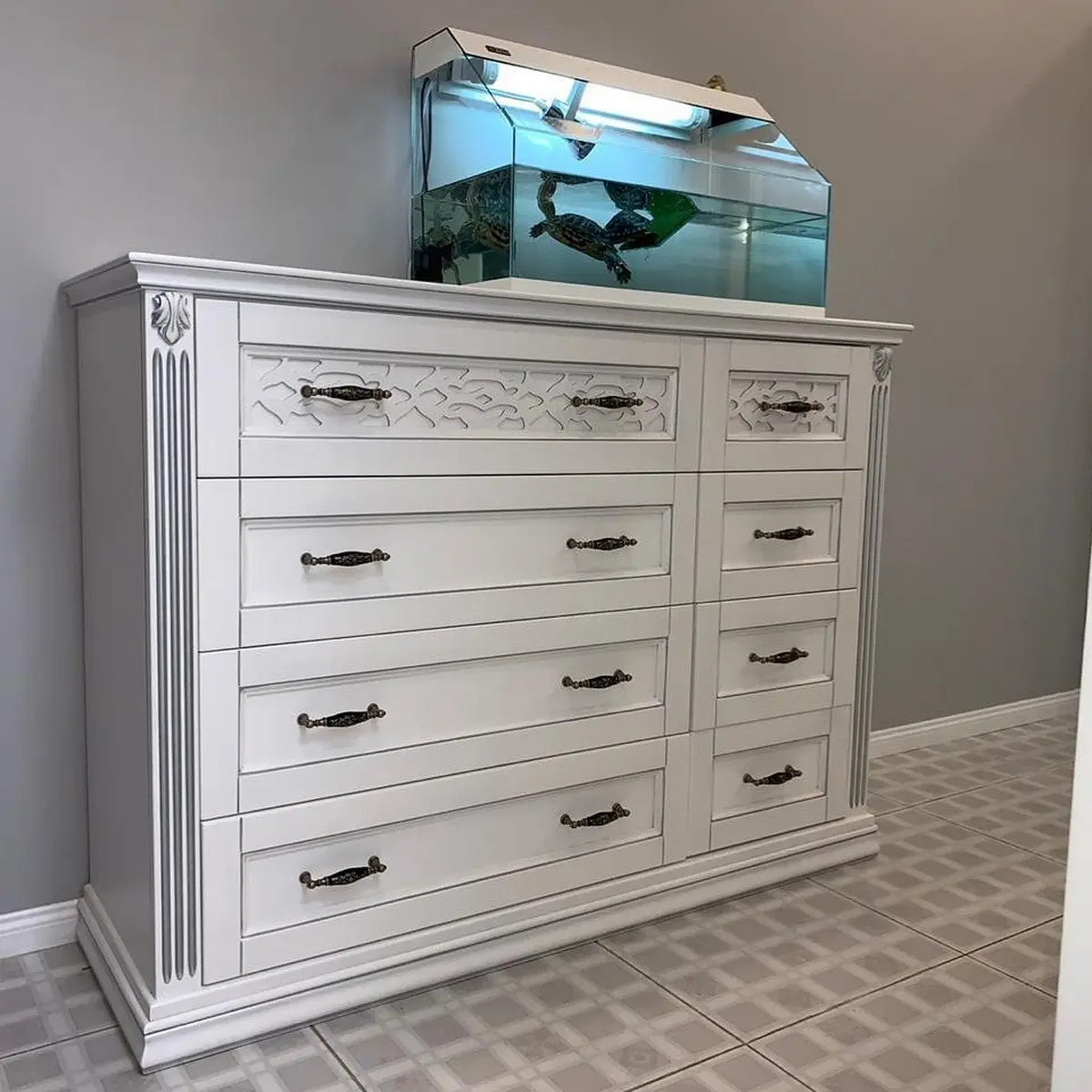 Функциональный комод с восемью ящиками подойдет для хранения вещей и постельного белья, а также для документов.