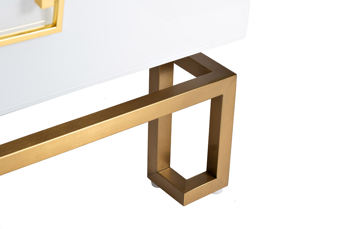 - Материал: Стекло белое, МДФ, каркас - нерж. сталь цвет золото