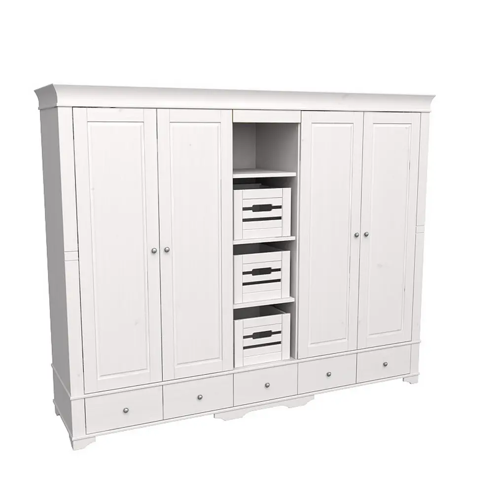 Шкаф Бейли 5 дверный с 4 глухими дверями и полками белый воск