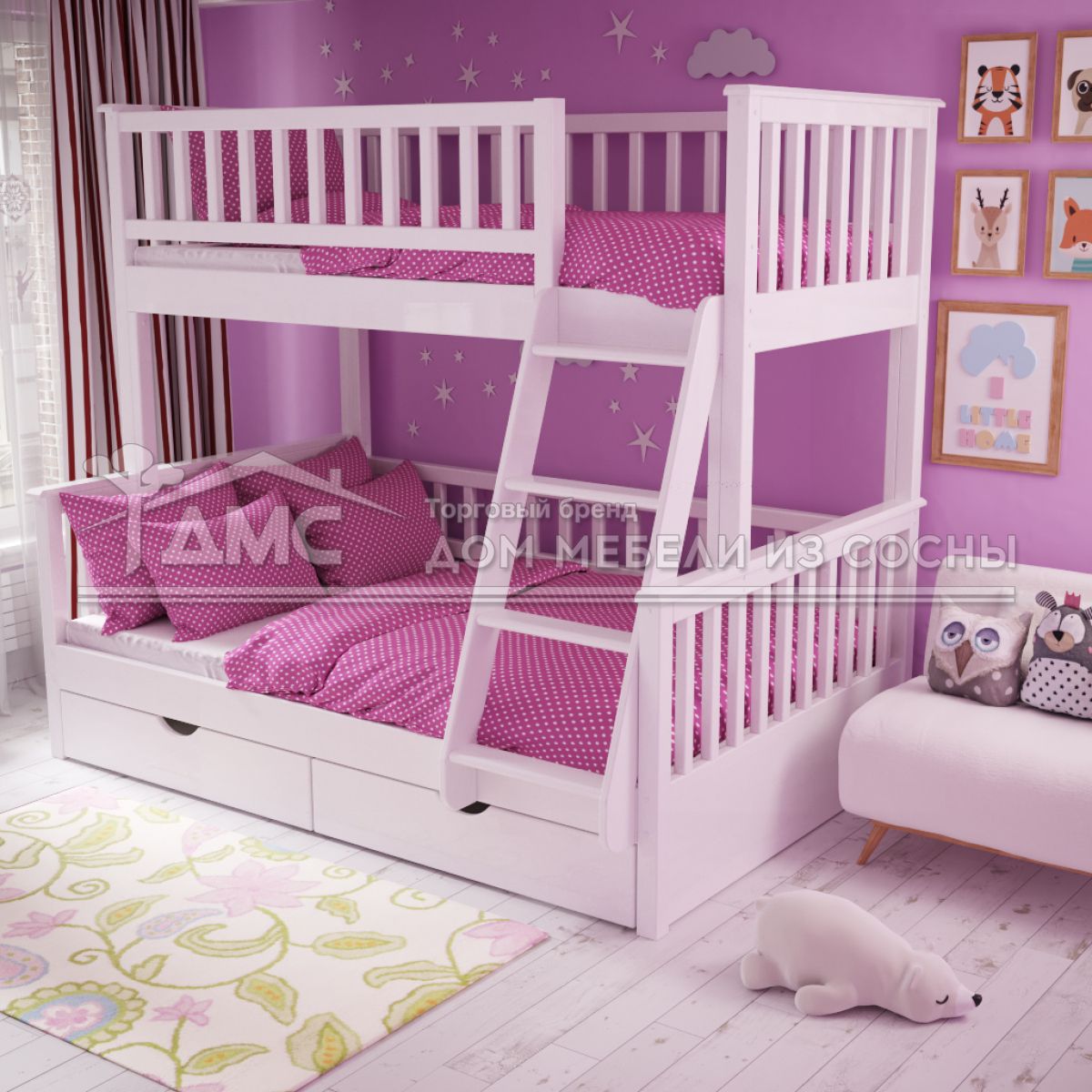 Спальное место нижней кровати имеет размеры 13002000 мм, а верхней — 9002000 мм. Это позволяет комфортно разместиться как детям, так и взрослым.