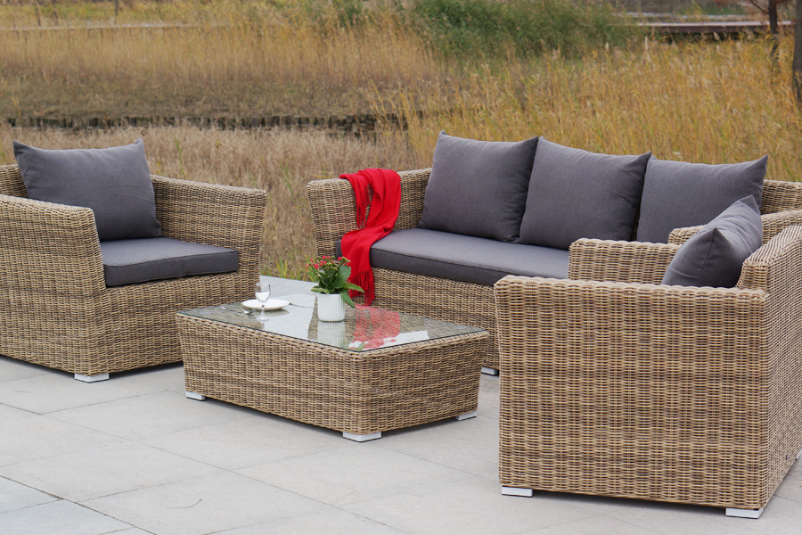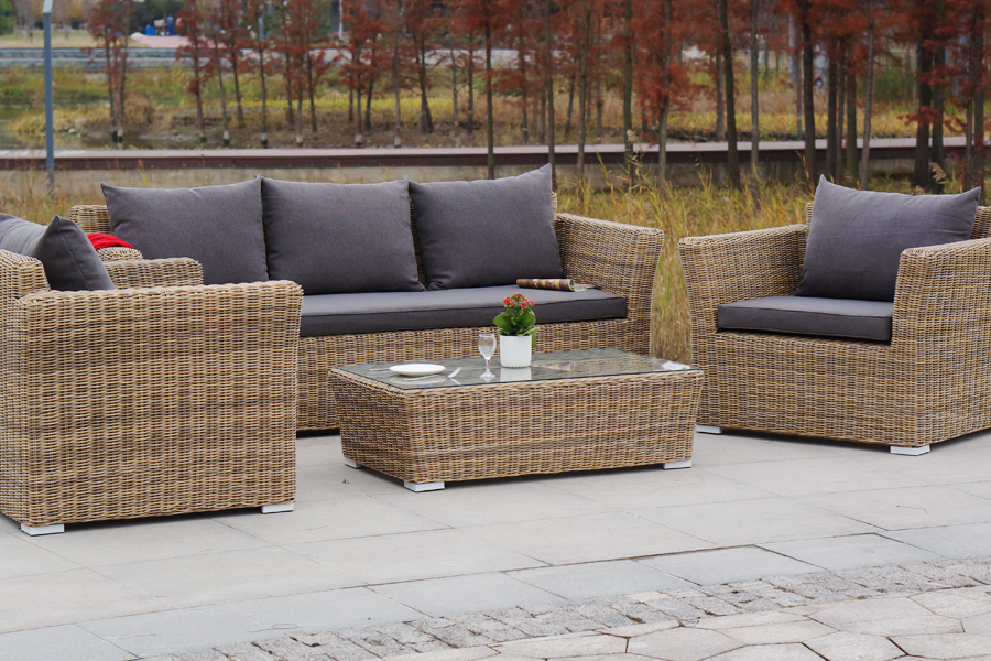 Лаунж-зона "Капуто" отличается хорошей вместительностью, поэтому подходит для комфортного отдыха компании до пяти человек. Комплект состоит из: - двух кресел (размер – 1040×865×815 мм) - журнального столика (размер – 1100×660×340 мм) - трехместного дивана (размер – 2220×865×815 мм). Из алюминия сделан устойчивый каркас мебели. Ее поверхность дополнена искусственным ротангом, из которого сделано ручное плетение, цвет соломенный. Кресла и диван идут в комплекте с подушками с серо-коричневыми чехлами. Они пошиты из качественного полиэстера с плотностью 230гр/м2. Материал предварительно проходит обработку влагоотталкивающей пропиткой. Столик дополнен практичной столешницей из стекла толщиной 5 мм. "Капуто" диван из искусственного ротанга трехместный, цвет соломенный 1шт. 2 220Х865Х815, "Капуто" журнальный столик из искусственного ротанга, цвет соломенный 1шт. 1 100Х660Х340, "Капуто" кресло из искусственного ротанга, цвет соломенный 2шт. 1 040Х865Х815,