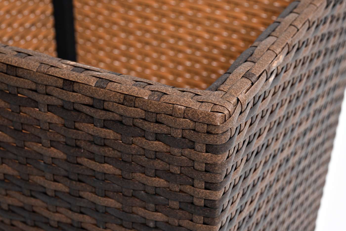 Плетеное кашко "Капуто" подходит для комнатных и уличных растений. Изготовлено из плоского искусственного ротанга коричневого цвета. Обладает высокой стойкостью к погодным условиям, перепадам температуры, не подвергается коррозии, поэтому можно использовать на открытом воздухе круглый год. В основе алюниевый каркас, который вручную оплетен ротангом. Высота кашпо - 70 см, длина и ширина - по 40 см.
