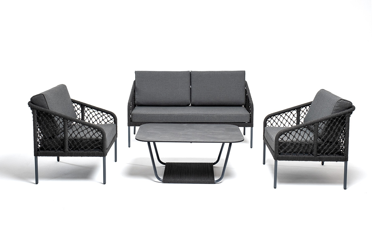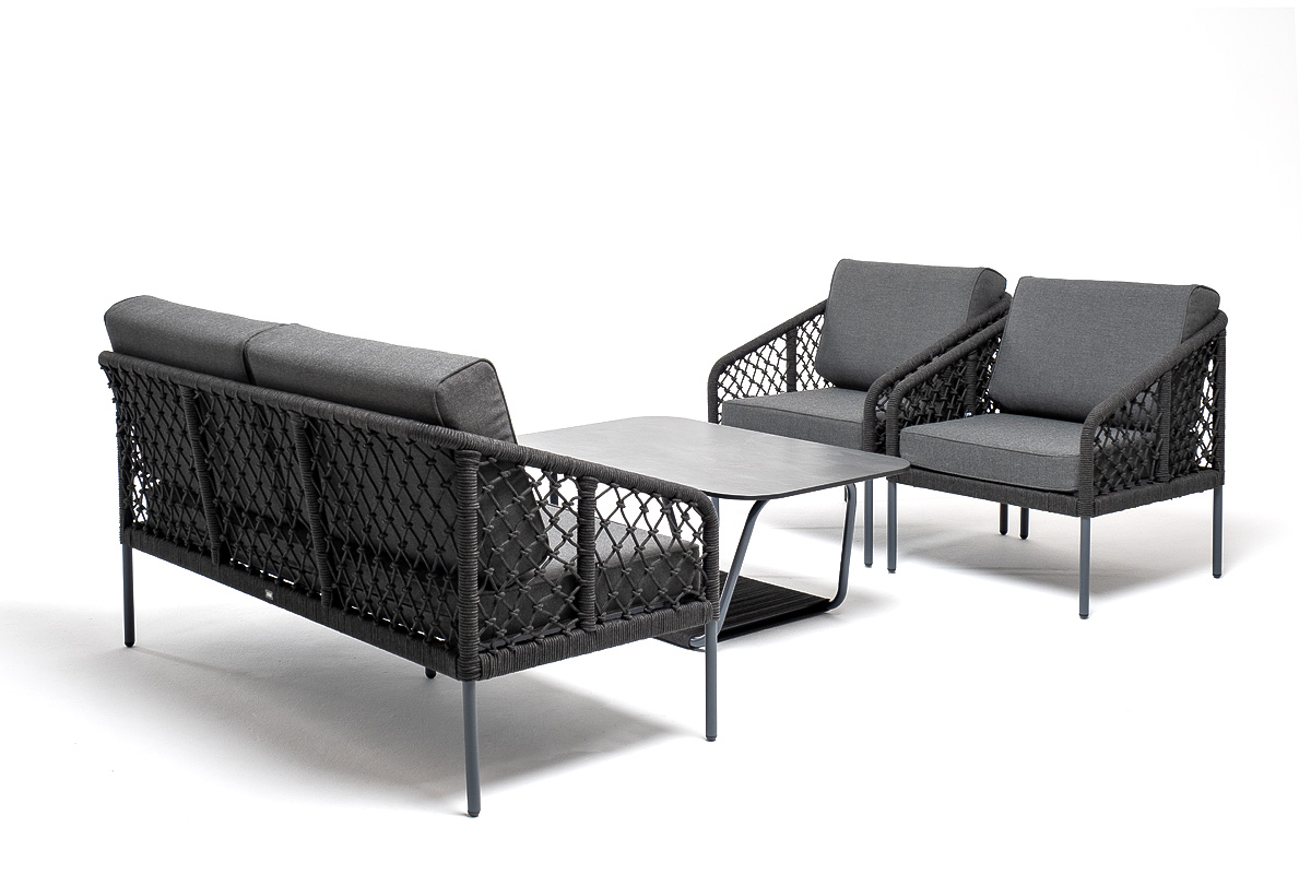 "Каннизо" лаунж-зона 4-местная из роупа узелкового плетения, каркас алюминий, роуп темно-серый