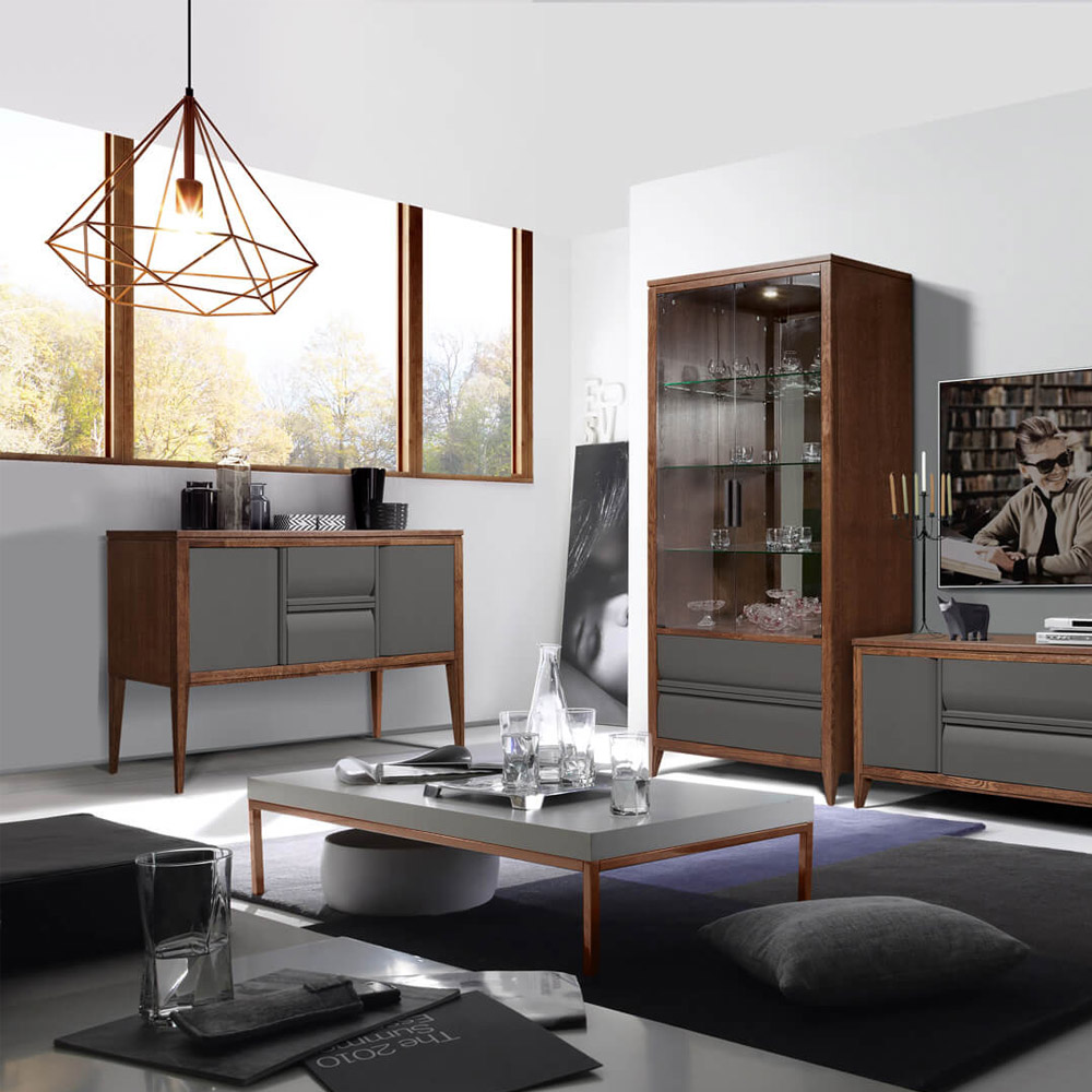 Изысканная тумба станет неотъемлемой частью Вашей гостиной комнаты. Современный лаконичный дизайн, уникальная красивая структура древесины дуба, строгие геометрические формы, отлично подобранная фурнитура, невероятная комбинация цвета табак и антрацит делает мебель коллекции Аликанте серьезным конкурентом на рынке современной мебели в стиле модерн.