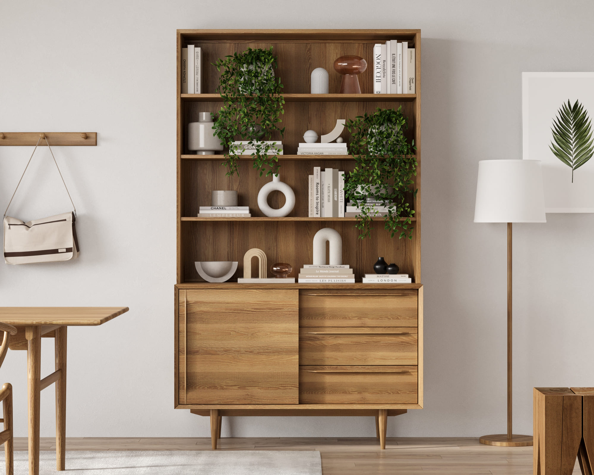 а также выполняет декоративную функцию, что удается благодаря простоте и лаконичности скандинавского стиля, и сочетанию темного и светлого оттенков корпуса из массива ясеня.