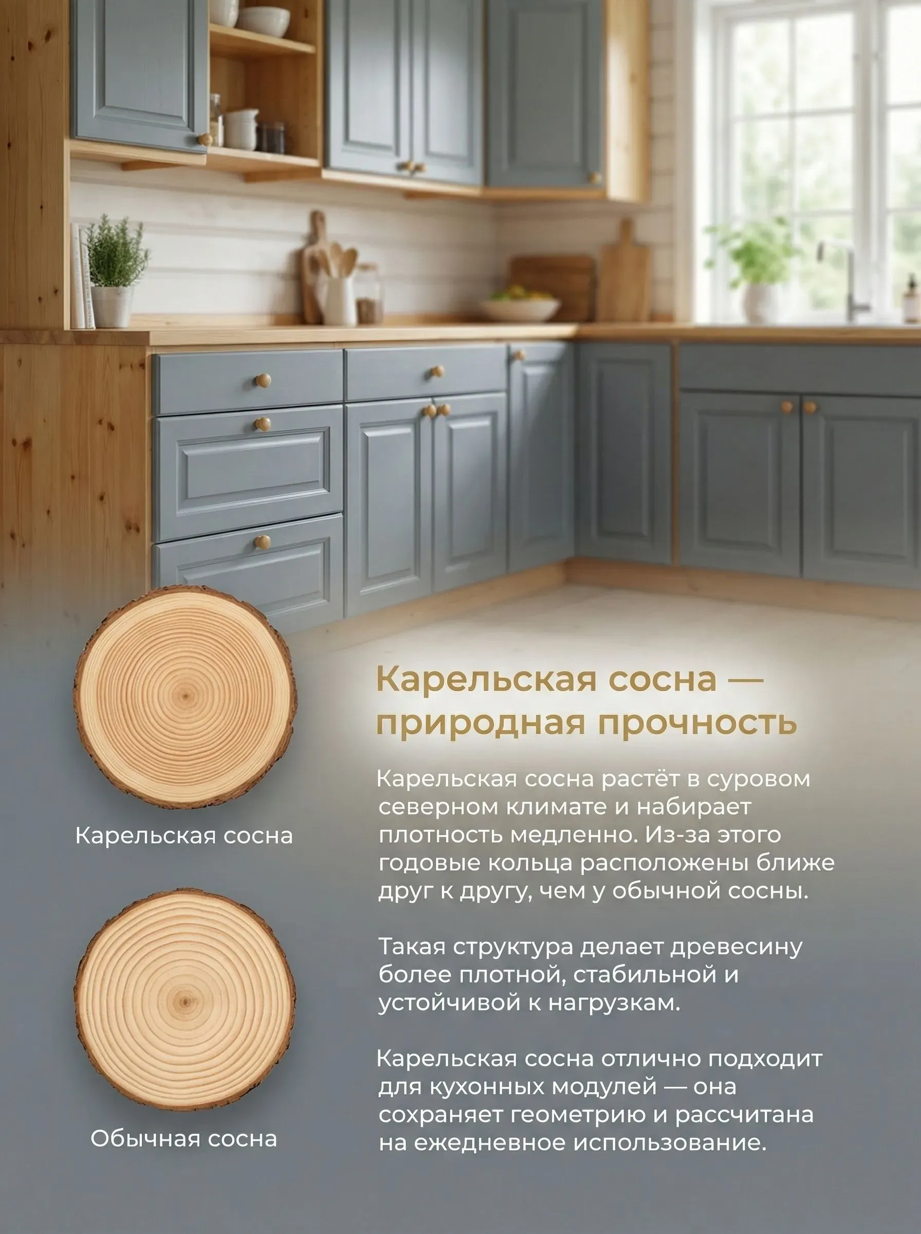 Материал — массив карельской сосны.