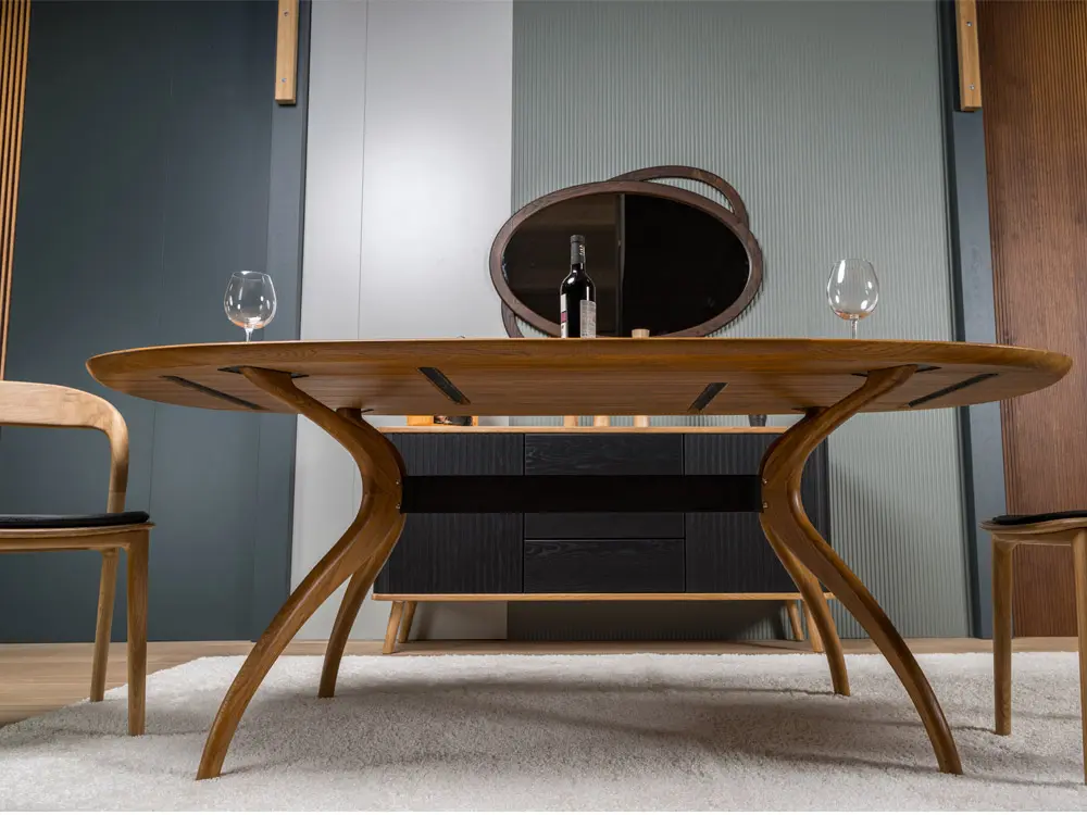 Стол выполнен из сращенного щита 100% массива дуба, сверху шпон.