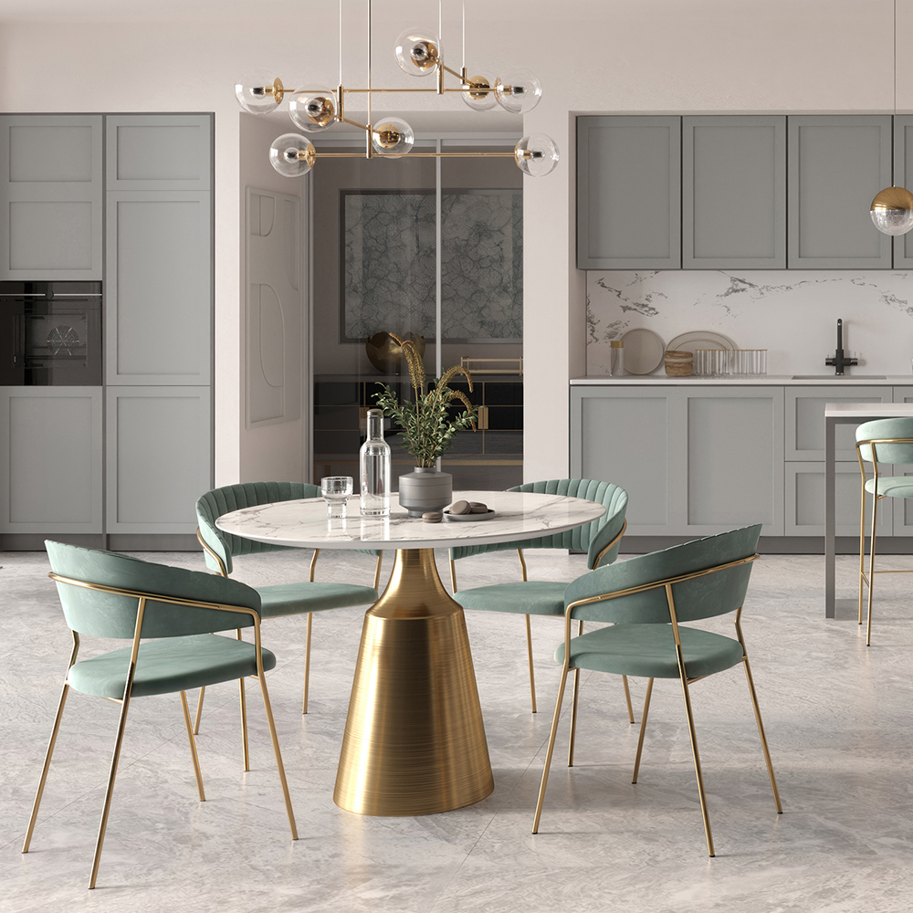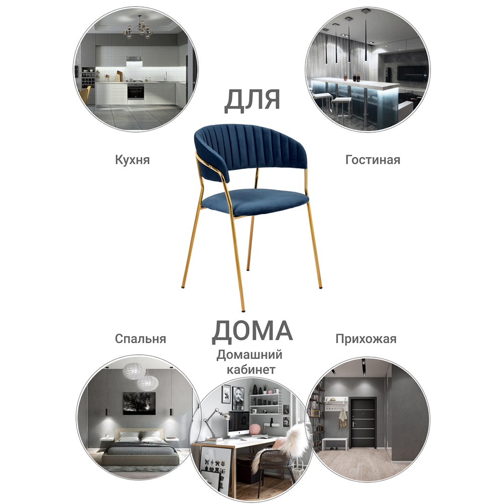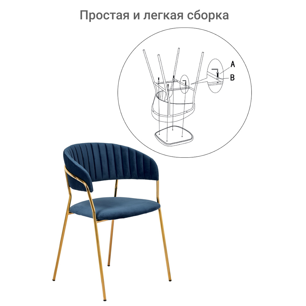 Элегантные золотые ножки из прочного металла создают эффектный контраст с сиденьем. Они придают конструкции визуальную легкость и повышенную устойчивость.