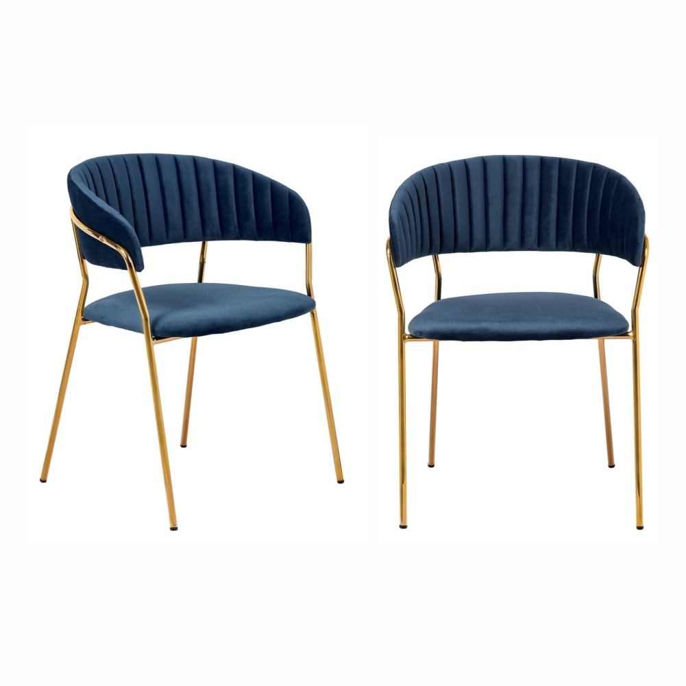 Комплект из двух стульев Turin в синем цвете станет ярким акцентом для вашей столовой или гостиной. Глубокий велюр обивки придает модели роскошный вид и обеспечивает исключительный комфорт во время использования.
